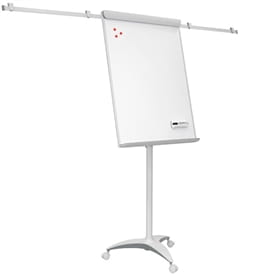 Powierzchnia suchościeralno-magnetyczna, lakierowana. Uniwersalny uchwyt zaciskowy do bloków pozwala na zawieszenie arkuszy A1 lub EURO. Stabilna konstrukcja nośna ze stali. Regulowana wysokość tablicy w zakresie 160-196 cm, dzięki łatwym w użyciu uchom zaciskowym. Podstawa jezdna, z kółkami z możliwością blokowania.