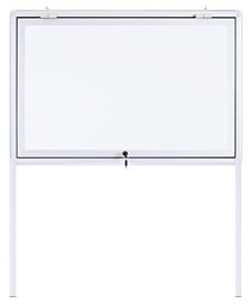Gablota ogłoszeniowa zewnętrzna wolnostojąca . Wykonana z profili aluminiowych. Nogi gabloty wykonane z jednolitego profilu. Przygotowane do zabetonowania w podłożu. Szyba w gablocie z bezpiecznego szkła akrylowego. Drzwi otwierane do góry jednoskrzydłowe na całej powierzchni gabloty , zabezpieczone uszczelką zapobiegającą przedostawaniu się wody, zamykane na zamek. Powierzchnia gabloty magnetyczna suchościeralna