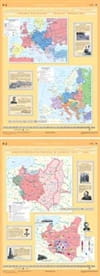 - pierwsza strona prezentuje dwie mapy Europy. Europę podczas I wojny światowej, w skali 1 : 6 000 000, oraz drugą mapę na której przedstawiono zmiany terytorialne po traktacie wersalskim, skala 1: 6 000 000