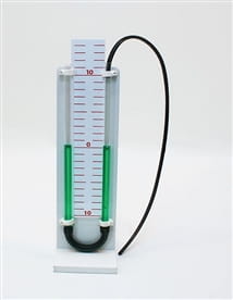 Manometr wodny - otwarty zbudowany jest z dwóch rurek labolatoryjnych połączonych ze sobą elastyczną rurką. Pomiędzy rurkami znajduje się ruchoma podziałka, umozliwiająca ustawienie zera przed pomiarem ciśnienia. Układ rurek napełniany jest cieczą. Przyrząd służy do mierzenia ciśnienia, najczęściej gazów.