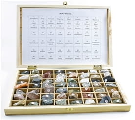 Zestaw 56 eksponatów w drewnianej skrzyneczce.