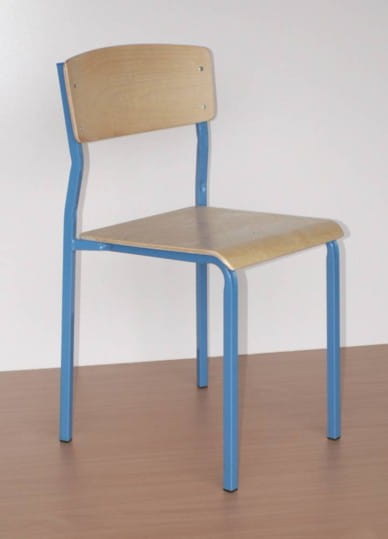 Krzesła wykonujemy z profilu kwadratowego 20x20 mm w rozmiarach 0-7. Stelaż pomalowany farbą proszkową zgodnie z zaleceniami Ministerstwa Edukacji Narodowej, numer krzesła oznaczony jest kolorem zatyczki lub całego stelaża. Siedzisko i oparcie krzesła wykonane są ze sklejki liściastej pomalowanej trzy krotnie lakierem bezbarwnym. Zamontowane są do stelaża za pomocą nitów zrywalnych fi 5x18 mm. Istnieje możliwość pomalowania siedziska i oparcia krzesła na dowolny kolor wg. wzornika RAL.