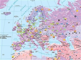 Ścienna mapa szkolna przedstawiająca zróżnicowanie gospodarcze świata - na podkładzie kartogramu konsumpcji energii elektrycznej (kWh/1 mieszk.) ukazane jest rozmieszczenie najważniejszych surowców naturalnych, główne ośrodki poszczególnych gałęzi przemysłu oraz lokalizacje największych elektrowni różnych typów.