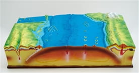 Model płyt tektonicznych - ukształtowanie terenu w przekroju