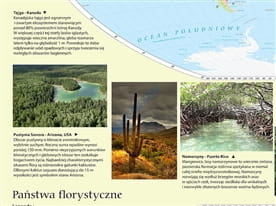 Pierwsza mapa ukazuje strefowe rozmieszczenie biomów oraz charakterystycznych dla nich formacji roślinnych. Druga część przedstawia granice państw i obszarów florystycznych (według Armena Tachtadżana) wraz z ich czytelnymi nazwami. Każda z map osadzona jest na przejrzystym i estetycznym podkładzie kolorystycznym.