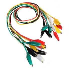 Zestaw 10 kabli zakończonych na obu końcach tzw. krokodylkami.