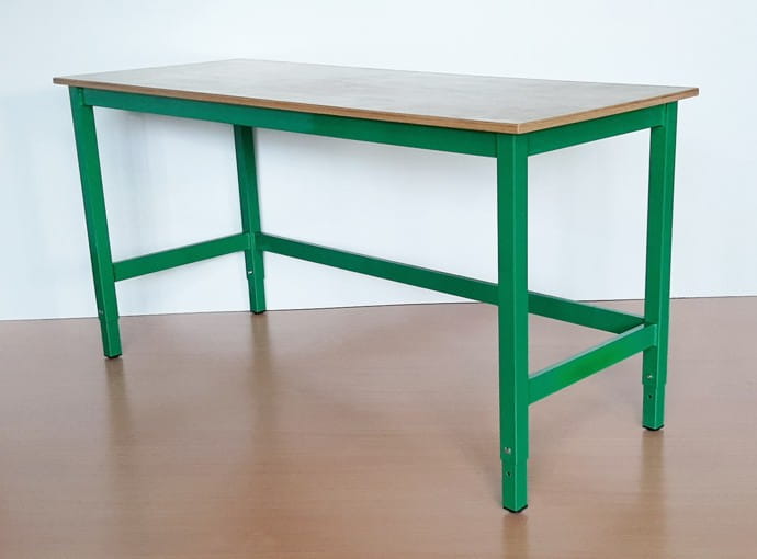 Całość pomalowana jest farbą proszkową. Blat wykonany jest ze sklejki liściastej o