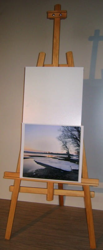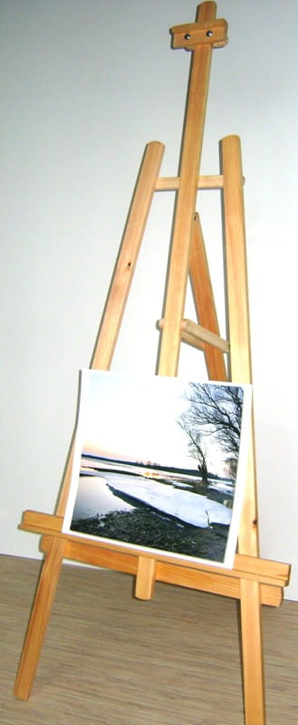 Półka dolna oraz górny chwyt posiadają płynną regulację, dzięki zastosowaniu motylków. Umożliwiają swobodną regulację wysokości podobrazia lub obrazu z ramą oraz zapewniają pewne i stabilne ich trzymanie.